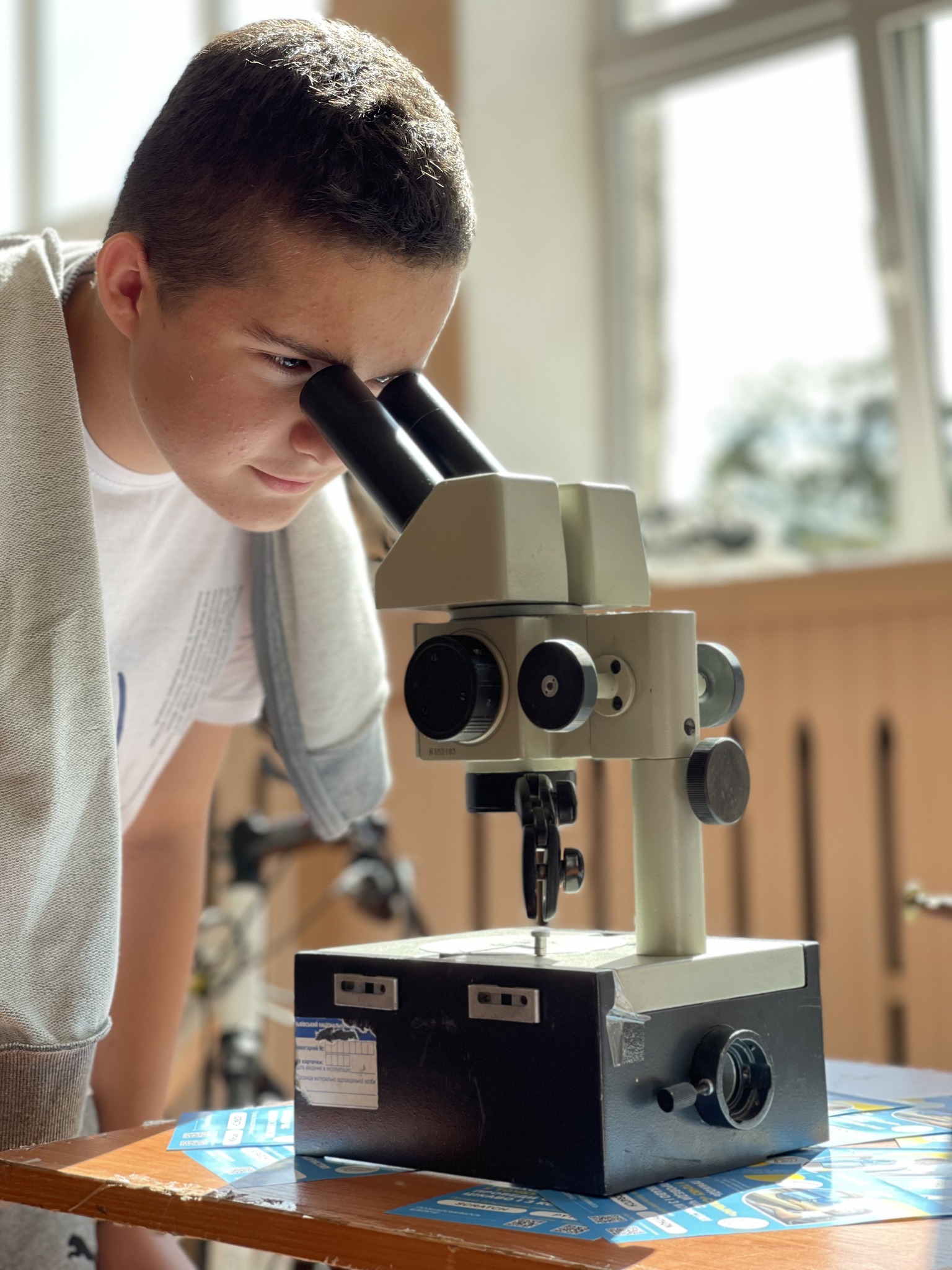 Серед учасників проєкту є також дітки з особливими освітніми потребами, як-от 13-річний Назарій, який навчається у 6 класі. Візит мобільної лабораторії став для Назарія справжнім святом.